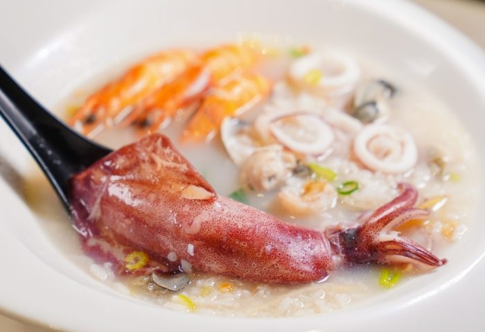- 小管海鮮粥 (NT$120): 小管新鮮脆甜是重點,湯頭清雅。