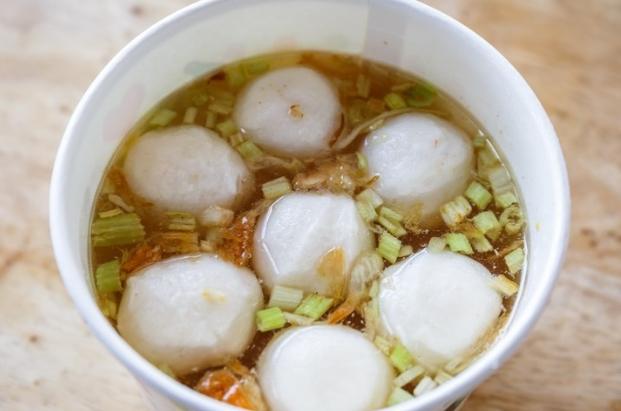 - 綜合魚丸湯:裡面有各種形狀的魚丸、魚片羹,湯頭清爽,撒點芹菜珠,超讚(必吃小吃)。