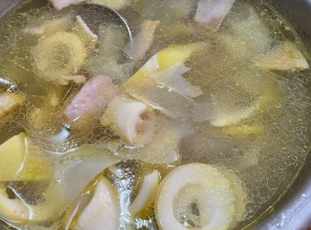 - 起鍋前加鹽調味即可。煮出來的湯會比排骨湯更清爽一些,但同樣鮮甜好喝!另外,像五花肉塊、蹄膀(處理過油脂的)也都很適合,會讓湯頭更濃鬱膠質感豐富。喜歡海味的,像我上面介紹的加蛤蜊也很棒!總之,桂竹筍是個百搭的好夥伴。