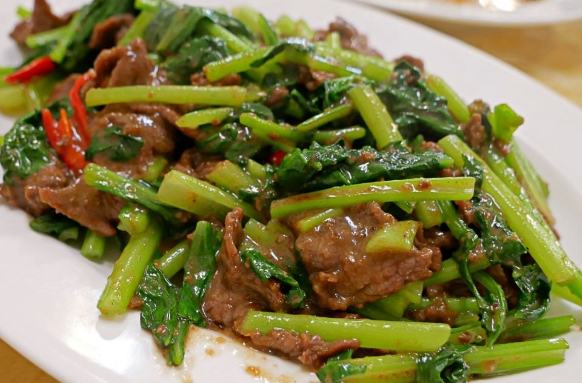 - 芥藍炒牛肉: 大火快炒的鑊氣,芥藍的脆,牛肉的嫩,點一盤配湯,營養均衡又夠味。牛園、阿國、老地方都很推。