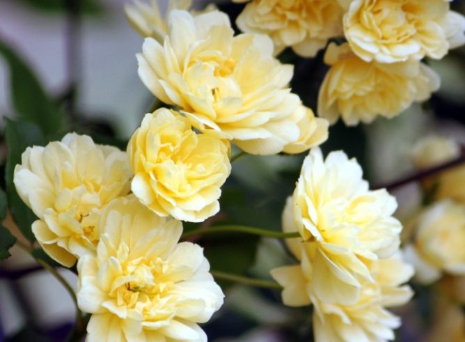 - 黃木香花:這是我最早接觸、也種得最多的品種。單瓣(通常5瓣)或半重瓣的小花朵,顏色是那種暖暖的、帶著點奶油質感的鵝黃色,開起來真的是成千上萬,像瀑布一樣傾瀉下來,壯觀極了!香氣非常經典,就是我們印象中那種濃鬱的甜香,老遠就能聞到。我覺得黃木香花是新手入門的首選,相對強健,開花量驚人,香氣也最為濃鬱飽滿。
