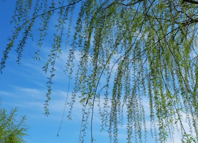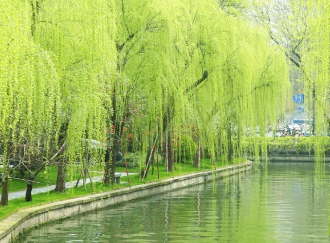 柳樹給人的第一印象絕對是柔軟。特別是垂柳和金絲柳,成千上萬條細細的枝條垂下來,風一吹就飄啊飄的,難怪古人說“楊柳依依”,真的很貼切。光是看著這些綠絲絛隨風擺動,心裡的煩惱好像也能被輕輕拂走一些。