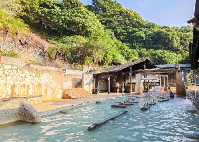 • 白磺泉池: 主池溫度大概在41-43度左右,水質是乳白色的(北投特色!),泡完面板真的會感覺特別滑溜。不過要提醒,這水對金屬飾品比較兇,記得先摘下來!