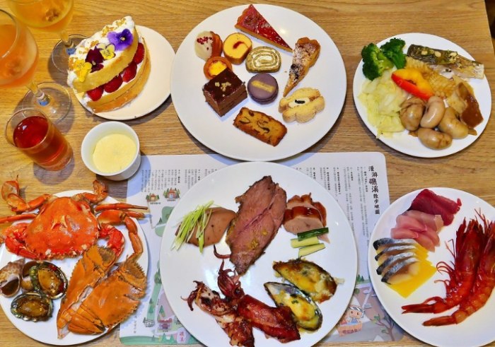 - 旗艦館樓上有餐廳,通常是供應 自助式晚餐/早餐 (住宿含早)。餐點種類算豐富,中西式、海鮮、甜點都有。口味嘛... 就 標準飯店Buffet水準,不難吃,但也沒有驚艷到非吃不可。 優點是方便,尤其住客懶得出門,或泡完湯累了想直接吃。 缺點是價格不便宜 (單買晚餐券也要好幾百),而且要留意用餐時間。德陽館好像沒有大型餐廳。