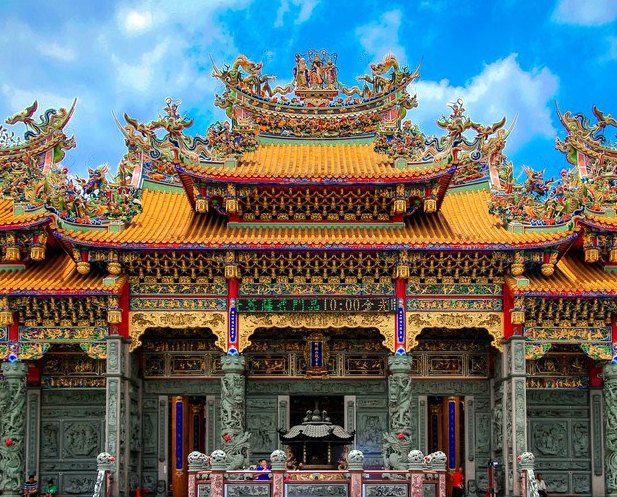 - 剪黏: 那些屋脊上色彩繽紛的人物、動物故事場景,就是傳統的剪黏藝術(用瓷碗碎片拼貼燒製而成),細看故事性很強。