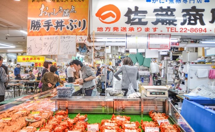 - 營業時間: 市場一般時間約 7:00~17:00,但現吃的蟹腳刺身或烤蟹腳供應通常同海鮮丼店時間 (早到!)