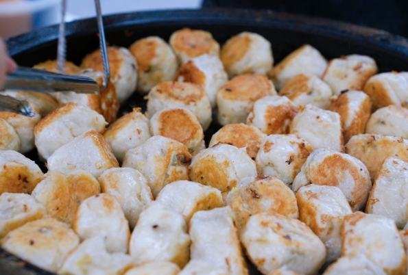- 介紹: 位於市場口附近的超人氣水煎包!底部煎得金黃酥脆,麵皮是老麵發酵,帶點咬勁。內餡飽滿,主要是高麗菜、韭菜口味,鮮甜多汁,調味剛剛好。一顆份量不小,吃起來很有滿足感。