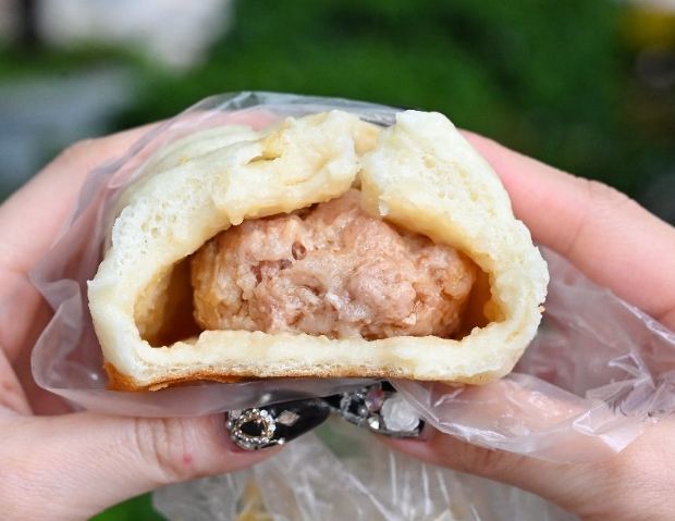 最後壓軸,介紹一個比較特別的點心攤。這個包子攤下午才出現,賣的是手工現做現蒸的包子饅頭。菠菜肉包是招牌!麵皮加了新鮮菠菜汁,呈現天然的淡綠色,吃起來帶有淡淡的蔬菜清香,口感扎實有嚼勁。內餡是調味恰好的豬後腿肉,肉汁豐富,搭配一點點青蔥提味。另外他們家的芋頭饅頭也很多人買,看得到芋頭顆粒,用料實在。包子個頭不小,一顆就很有飽足感。當下午點心或早餐都很適合。缺點是口味選擇相對沒那麼多,且蒸籠一開,很快就被掃光,晚來可能買不到想吃的口味。