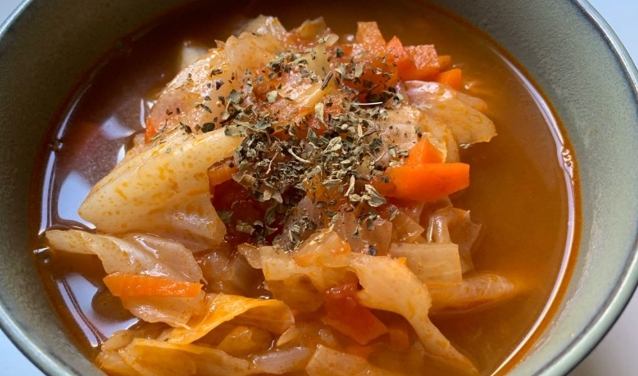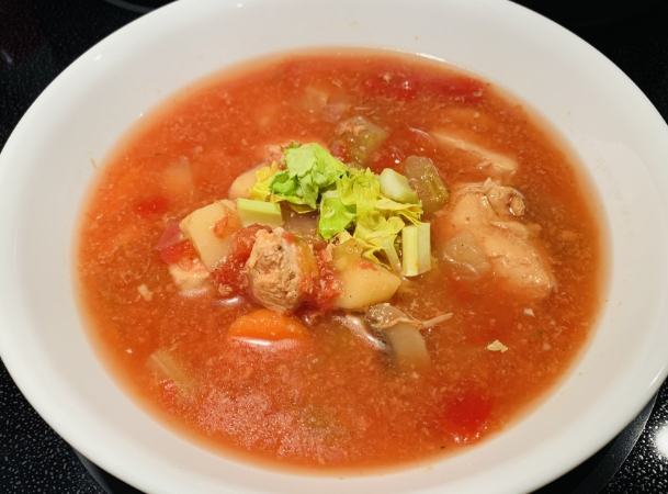 - 完成: 關火,稍微燜一下讓味道融合。這鍋充滿天然蔬果精華的素食湯有著漂亮的琥珀色,熱騰騰的來一碗,搭配法國麵包蘸著吃,真的會忘記疲勞!隔餐再加熱味道更醇厚,是我超愛的懶人料理。