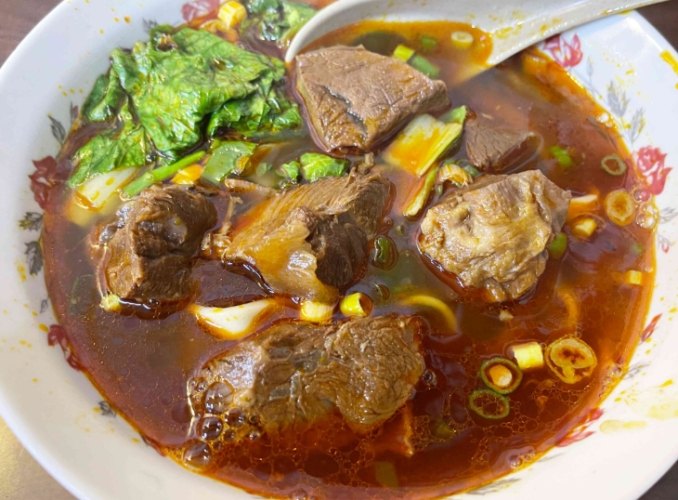 點「紅燒牛肉麵」就對了!重點就是那個肉量!超大碗裡面的牛肉塊可能有七八塊以上,而且每塊都又厚又大,絕對能滿足肉食主義者的慾望。湯頭是比較家常的紅燒味,不會太油太鹹。麵條是普通細麵。雖然湯頭和麵條的細緻度可能比不上前面幾家頂尖的,但那種大口吃肉的爽快感,讓這碗「南港牛肉麵」在南港肉量排行榜上絕對名列前茅!胃口小的人記得點小碗。
