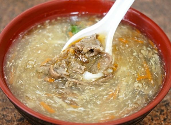 - 羊肉羹(麵/飯/米粉): 羹湯濃稠度適中,帶點淡淡的當歸香氣,羊肉片給得不少,處理得完全沒有羊羶味,口感軟嫩。可以加點烏醋和特製辣醬更提味。