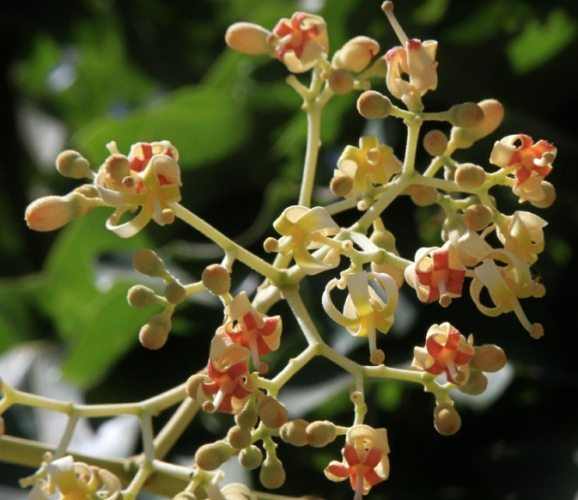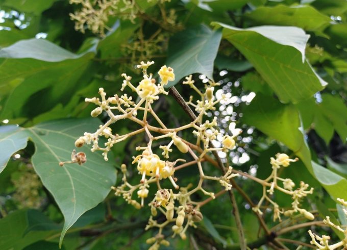 至於花果,我的小樹還沒開過花(聽說至少要等個5-7年,真是考驗耐心!)。查資料知道,它的花是黃綠色的小花,聚成圓錐花序,不算特別豔麗。但它的果實很奇特,成熟時會裂開成葉片狀(舟狀蓇葖果),邊緣還帶著種子,像個迷你小船,據說種子炒熟了還能吃,有豌豆的味道?(這點我超好奇,等結果了一定要試試!)