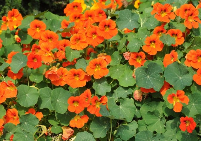 盾葉金蓮花 葉子形狀精緻 花朵相對碩大 葉子可食用,擺盤點綴一流 花壇前景、盆栽