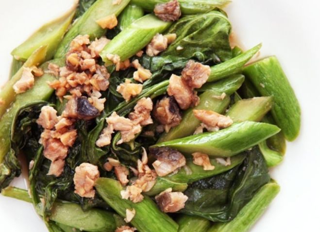 鹹魚炒芥蘭 (或空心菜、A菜)