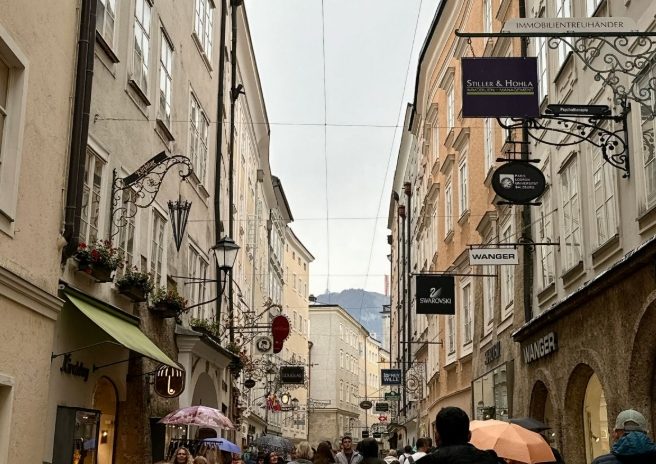 - 介紹: 薩爾斯堡最古老、也最有名的購物街!狹窄的巷道兩旁是歷史悠久的精美建築,最大特色是每家店的鑄鐵招牌(真的超美,別忘了抬頭看),以及保有傳統風格的拱廊通道。名牌店、紀念品店、莫扎特巧克力店(Original Mozartkugel)、當地特色店鋪林立,很好逛但也超多人(尤其白天)。建議可以清晨或是黃昏來走走,感受氣氛。