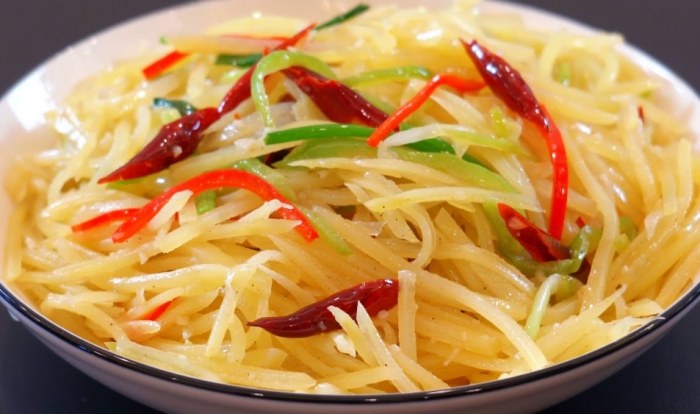 - 肉香滿溢: 想更豐盛?先用少許醬油、米酒、太白粉抓醃豬肉絲或雞肉絲,熱鍋熱油滑炒至變色盛起。等土豆絲快炒好時,把肉絲倒回鍋中一起快速翻炒均勻。肉類的加入讓整道菜更有滿足感,但切記肉絲別炒老。