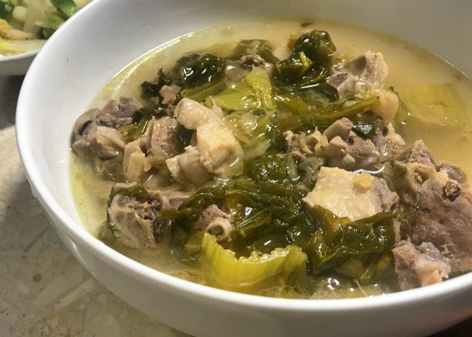 - 古早味:酸菜鴨肉湯/酸菜雞湯 - 冬天最愛!鴨肉或雞肉燉煮到軟,湯頭濃鬱時加入大量酸菜絲一起煮,那酸香暖胃又開胃。