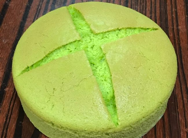 - 完全冷卻後脫模:可以用手輕輕地從邊緣和煙囪內壁將蛋糕小心地剝離開來,最後推底部脫出模具。一個完美蓬鬆、翠綠(或墨綠,看班蘭汁濃度)的 班蘭蛋糕 就誕生啦!