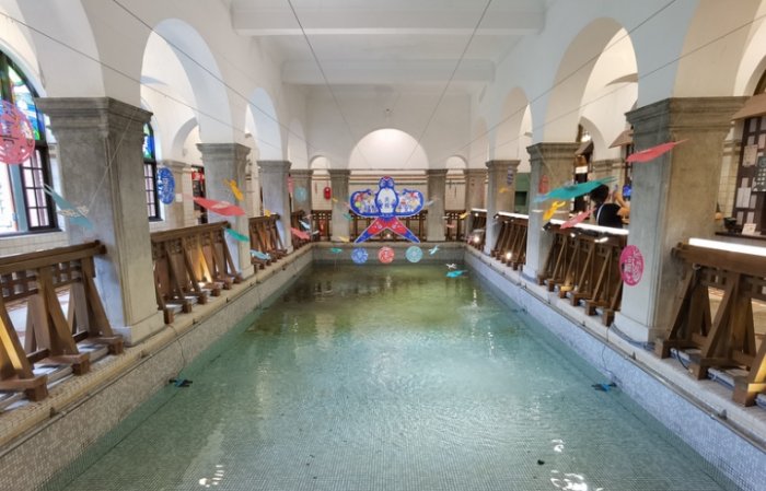 A: 不可以喔! 北投博物館是歷史建築博物館,重點在於展示北投溫泉的歷史、文化與建築藝術。裡面的大浴池是「歷史遺跡」,沒有注水,是不能泡湯的!想泡湯請到附近專門的溫泉會館或公共浴池。 -