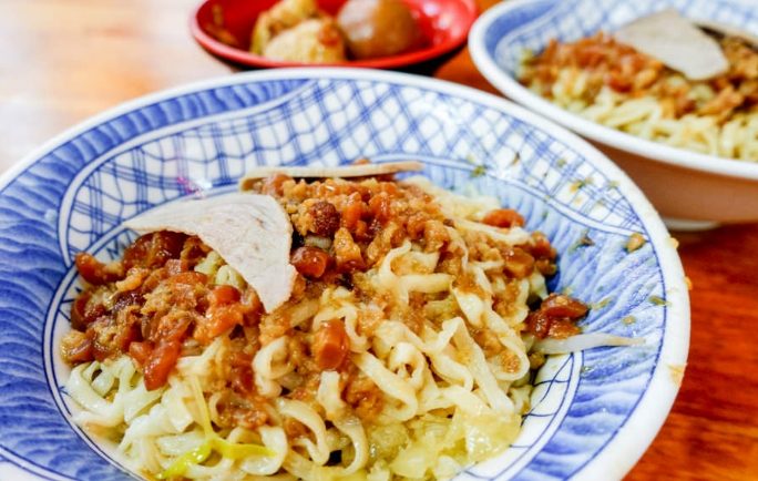 這家絕對是我的 水仙宮市場 開場首選!招牌餛飩意麵,簡單卻深得我心。意麵是那種細細扁扁的台南傳統意麵,口感帶點Q。重點是那餛飩,個頭不大但肉餡鮮美紮實,皮薄到透光卻不易破。湯頭看起來清澈,入口是溫潤的大骨香氣,非常清爽。每次來都看到老闆手沒停過,一碗接一碗煮。