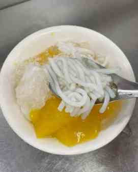 • 介紹: 吃完鹹食甜點胃永遠還有空間!這家傳統甜品攤賣的是最經典的粉圓冰豆花粉圓(珍珠)是老闆自己煮的,個頭較小,口感軟Q適中,不會過於軟爛也不會硬心,帶著黑糖香氣。糖水不會死甜。豆花是傳統鹽滷豆花,口感綿密細緻,豆香濃郁。配料有綠豆、紅豆、花生、粉圓等可選。夏天來一碗冰涼的粉圓冰或豆花,瞬間降溫消暑。冬天也有熱甜湯可選。