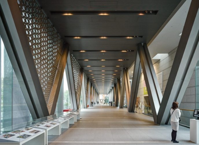 - 東京都現代美術館 的建築本身也是看點! 由柳澤孝彥設計,那個巨大的三角斜面屋頂和玻璃帷幕,讓自然光灑進來,跟展覽空間結合得很好,拍照也好看。