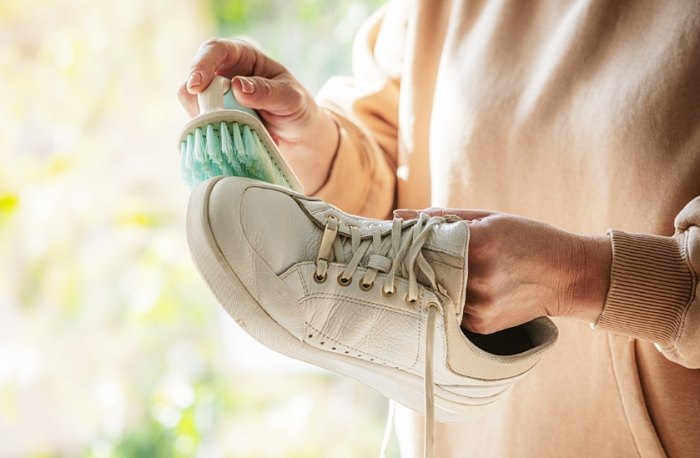- 清潔液: 同樣用溫和中性白鞋清潔劑,稀釋在微溫水中。