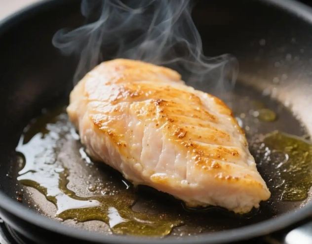 3. 油封/泡油法:雞胸泡在油裡(冷油開始),用小火慢慢加熱到熟(約60-70°C),原理類似低溫煮。