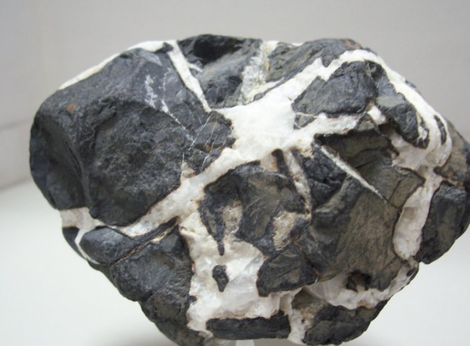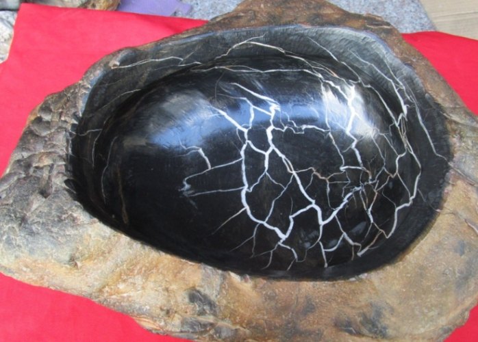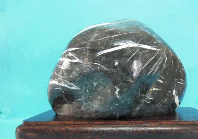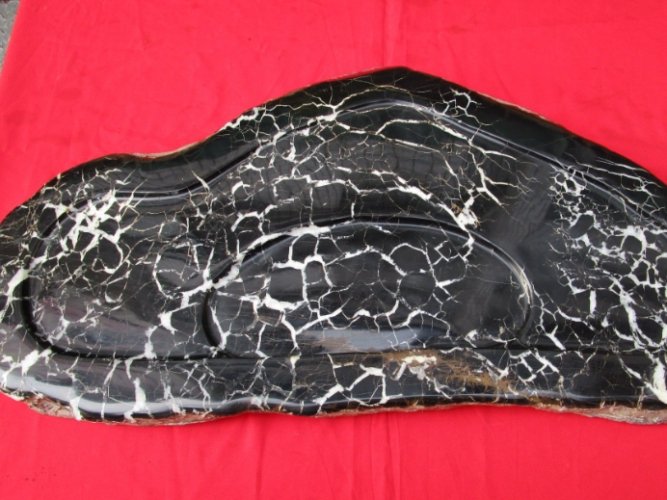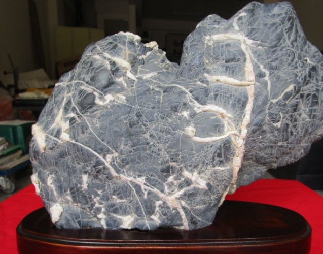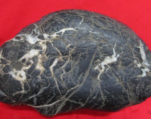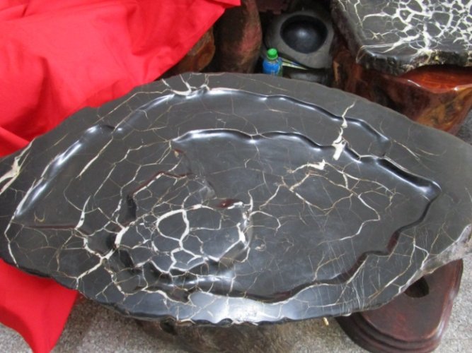 最廉價的造假手段。把普通灰黑色的石頭(甚至水泥塊!)染成全黑。破綻百出!