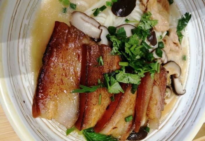 秘訣:拌麵時碗要夠熱!豬油遇冷容易凝結,拌不開。可預先用熱水溫碗,或像我一樣,煮麵時把空碗放鍋邊利用蒸氣溫熱。