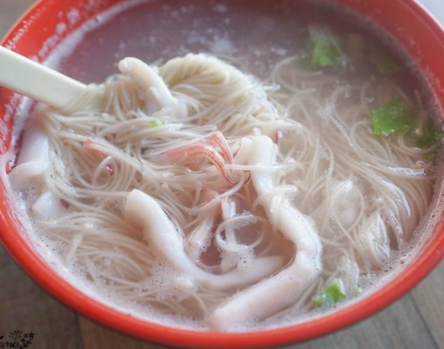 - 擺盤: 把剛才燙好的鮮嫩小管鋪在麵線上。