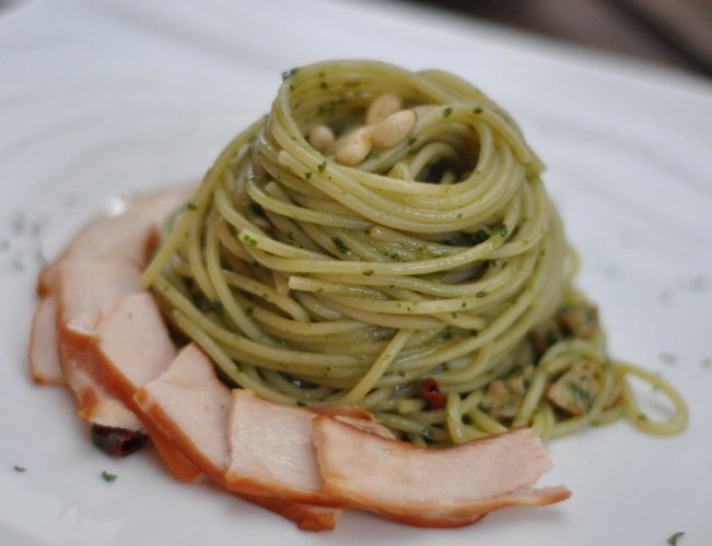 必點選單: 「香蒜辣椒鯷魚義大利麵(清炒)」 - 鯷魚的鹹香與蒜辣融合得恰到好處,橄欖油的香氣迷人,簡單卻非常耐吃的一道。 「綜合野菇蔬菜義大利麵(青醬)」 - 青醬是自製的,顏色較淡但羅勒香氣清新,搭配滿滿的各種菇類和時蔬,健康美味無負擔。素食者也可以請老闆娘調整。