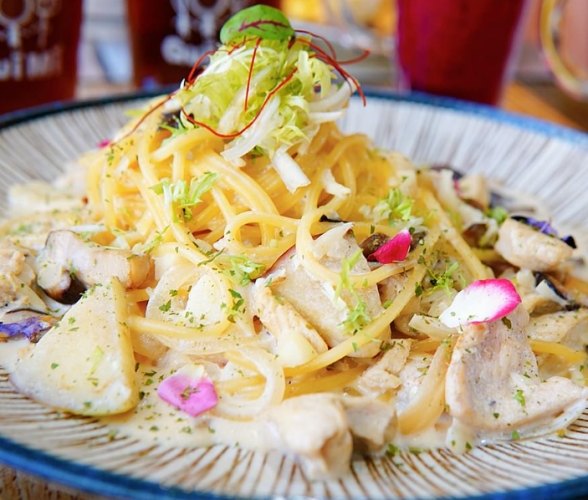• 松露野菇雞肉義大利麵: 松露香氣足,野菇種類多炒得香,雞肉嫩,醬汁濃稠度剛好,每一口都充滿菌菇的香氣。NT$310