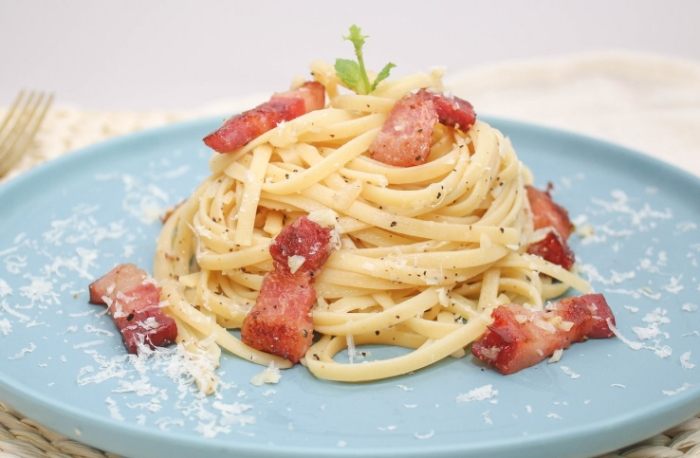 - 創意滿分!濃鬱的鹹蛋黃醬緊緊包裹著麵條,鹹香四溢,加上煎得焦脆的培根,邪惡度爆表但超好吃!口感濃稠滑順,喜歡鹹蛋黃風味的絕對要試試看這個獨特的口味。