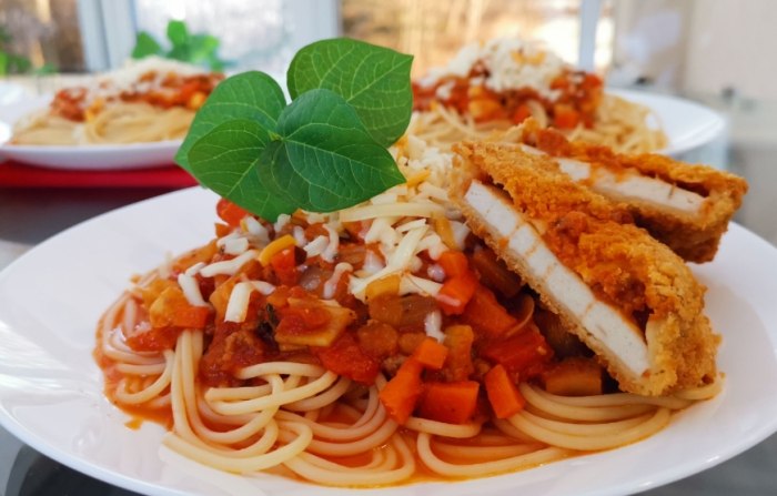 - 辣味雞肉番茄奶油義大利麵: 紅醬+白醬的組合(Pink Sauce),帶點微辣,口味豐富,雞肉嫩。