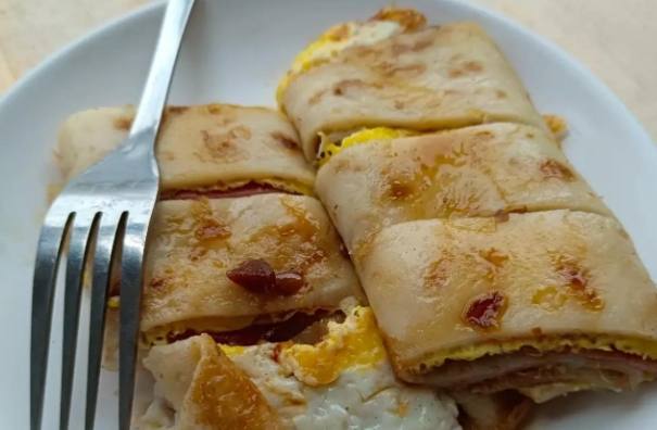- 炸彈蔥油餅(加蛋)(NT$40): 現擀麵糰下高溫油鍋,瞬間膨脹成金黃酥脆的餅皮,打入雞蛋,蛋黃維持漂亮的半熟狀態。一口咬下,酥脆、蔥香、蛋液爆漿,三重享受!