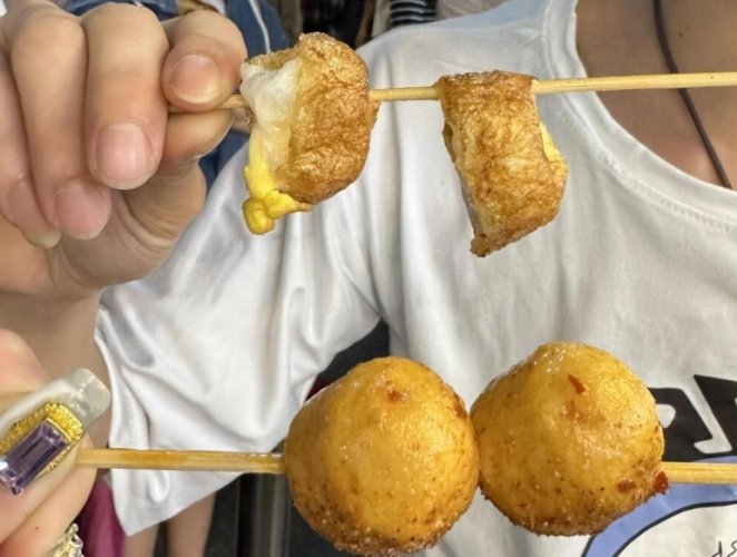 天啊!這家臭豆腐讓我完全改觀!它跟常見臺式油炸臭豆腐完全不同,採用的是醃製夠味的港式生豆腐。炸得外皮極度酥脆,像餅乾一樣,裡面卻保持著驚人的軟嫩水潤!重點是它的「臭味」非常溫和,連我那個不敢吃臭豆腐的老媽都能接受。配上店家特調的醬汁和清爽解膩的泡菜,一口咬下,酥、嫩、香、鹹、甜、酸在口中爆發,層次豐富到令人驚艷!這絕對是隱藏版的 羅東必吃 黑馬!