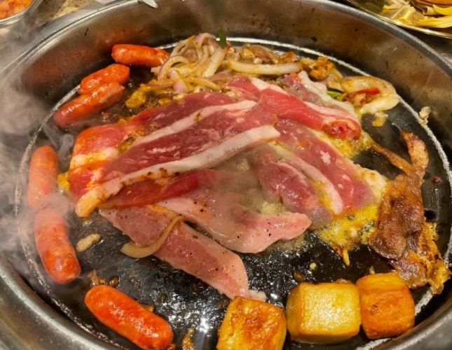 - 介紹: 想吃點 不一樣的燒烤吃到飽?這裡的 爆炒類 很有特色!像是火焰鴨血、黃金泡菜炒牛肉,直接在桌邊炒給你香氣撲鼻!肉品選擇較基本,但爆炒系列真的很有記憶點。 想換換口味嚐鮮的人可以試試。