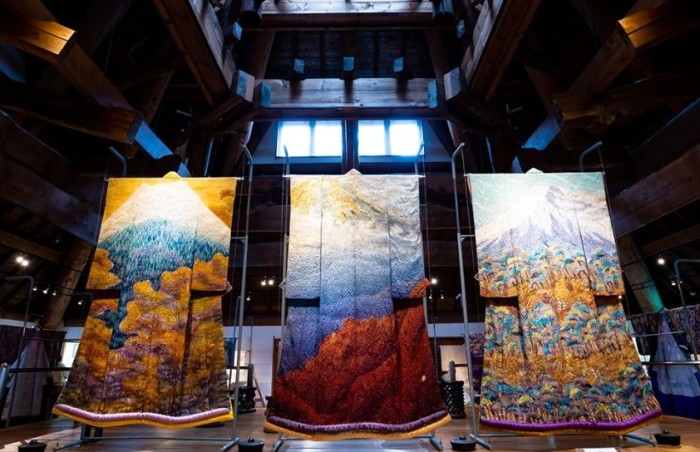 - 『 一竹辻が花』曼陀羅系列(主館): 重頭戲!巨大的和服藝術品像屏風一樣展開懸掛。每一件都有一個主題,比如 『 麗富士』系列(展現富士山四季晨昏之美), 『 出雲』系列(神話靈感), 『 大宇宙』系列...