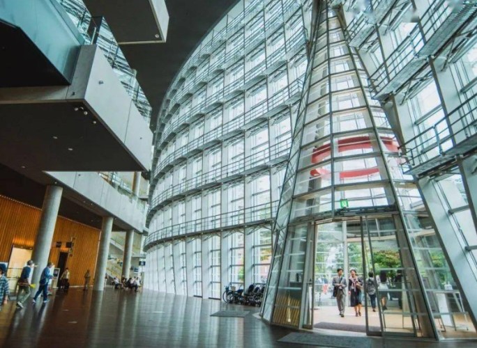 它的建築本身就是傳奇,由已故日本建築大師黑川紀章設計。走進大廳,抬頭仰望那高達21.6米的玻璃圓錐體,陽光傾瀉而下,那種空間的通透感与流動感,瞬間讓人忘卻都市的喧囂。巨大的波浪形外牆(靈感來自自然山巒的起伏,用的是特殊玻璃材質),無論是從外面看,還是在裡面感受光線的變化,都令人驚嘆。我覺得單單為了欣賞這棟建築的設計美感,就值得專程跑一趟六本木了。國立新美術館 的建築本身就是一場視覺饗宴。(國立新美術館)