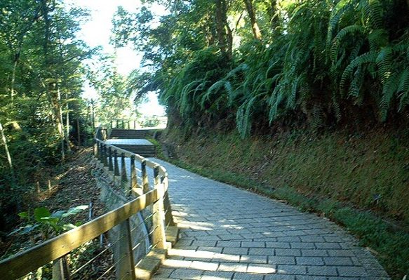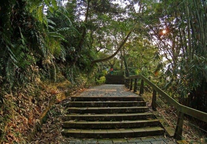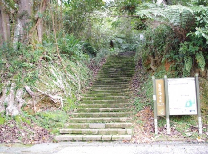- 階梯爬升之旅: 踏上石階,就進入了林蔭世界。抬頭看,層層疊疊的階梯向上延伸,目標(塔頂)在樹梢間若隱若現。記得調整呼吸(我習慣兩吸一呼),用自己最舒服的速度前進。階梯寬度夠兩人交錯透過,材質是花崗岩石板或水泥仿石,雨天會有點滑,要小心。