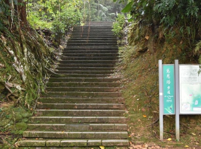 這條步道非常單純:就是一條從山腰直通山頂塔樓的純"階梯型"步道。它不是環狀線,不是森林浴步道(雖然有樹蔭),也沒有其他岔路可選(頂多快到塔前有個很小的觀景平臺岔路)。目標非常單一:登上慈恩塔! - 是否申請