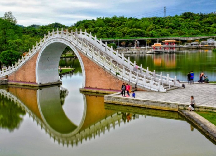 - 介紹: 緊鄰大溝溪親水步道入口處。擁有超大片湖面、錦帶橋(經典地標)、草坪,是野餐、放風箏、划船、散步的絕佳地點。公園維護得很好,生態豐富,常見水鳥。走完輕鬆的親水步道或操爆腿的鯉魚山後,來這邊放鬆看湖景,超舒服。