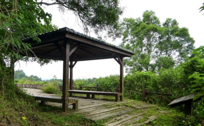 - 中段 (原始路徑與觀景臺): 爬完主要階梯段後,路會變得更原始一些,變成泥土路夾雜石塊和樹根。走起來其實更有野趣。接著就會抵達此行最大的亮點——觀景臺!這個平臺不大,但有設定幾張椅子。視野非常開闊,可以俯瞰公館鄉的田野、房舍,天氣晴朗時,遠方的山巒層層疊疊,讓人心曠神怡。這裡絕對值得多停留一會兒,補充水分,吃點零食,拍拍照。我們上次在這待了好久曬太陽,超舒服。