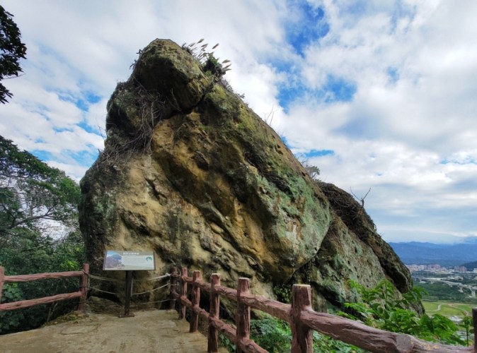 - 核心景點:鶯歌石平台:哇!就是這裡了!巨大的鶯歌石就在眼前,壓迫感十足。這邊有鐵欄杆圍著保護安全(也防止破壞),是拍照打卡的熱點。仔細看石頭上的紋理、風化的孔洞,還有長在石縫裡頑強的小樹,生命力超強!視野也超棒,記得走到平台另一端看看不同的角度。