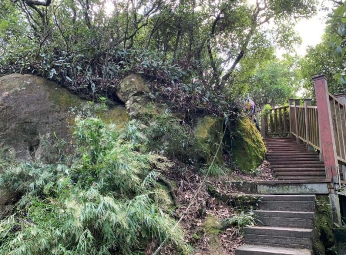 - 挑戰段:陡上鶯歌石:看到鶯歌石的指標越來越近,路也開始變陡了。這段石階和原始土坡混合,真的要踩穩、必要時拉繩!慢慢走別急。很快就會到第一個觀景平台(在鶯歌石下方)。