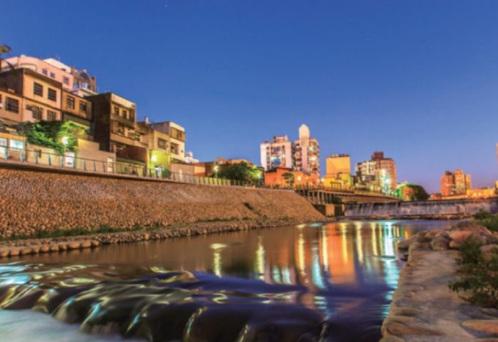- 黃昏時 在 「中正公園」 往市區方向拍,能捕捉到都市燈火與靜謐溪水的對比。