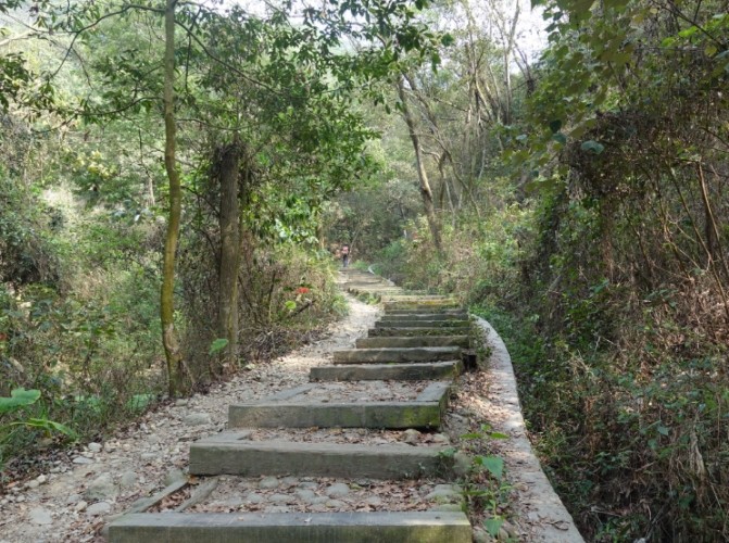 - ★★☆☆☆ (2/5) – 整體平易近人。 一開始是緩下坡,回程變緩上坡。坡度不陡,階梯平緩好走(少數幾階稍高)。路面狀況良好(木板、石板為主)。
