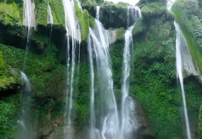 • 當你聽到越來越響亮的水聲,穿過一片樹林或繞過一個大彎,氣勢磅礡的仙女瀑布就會赫然出現在眼前!相信我,第一眼看到真的會「哇」出來!它屬於懸谷型瀑布,高度目測超過20公尺(官方資料約25公尺左右),水流從頂端巖壁傾瀉而下,注入下方寬闊的深綠色水潭