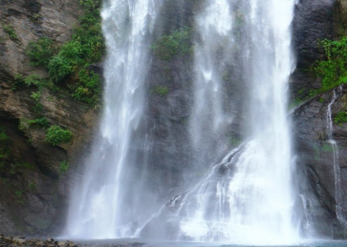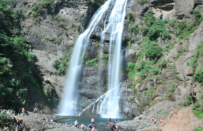 最讓我念念不忘的,是它的「兩段式」表演!從步道下來,會先看到 水流從頂端傾瀉而下,撞擊中間一塊巨大凸巖,水花炸裂開來,像灑下一大把閃亮的鑽石,陽光夠好的話,彩虹幾乎是天天見面(前提是你選對時間)。接著,水流會匯集起來,再次衝向底下的深潭 ,那個氣勢,真的不是站在旁邊拍張照就能感受的,你得去聽、去感受那股撲面而來的水氣和震動。底下的水潭超級清澈,是那種透心涼的藍綠色,夏天泡下去,保證比吹冷氣還爽一百倍(但要非常注意安全!後面會說)。